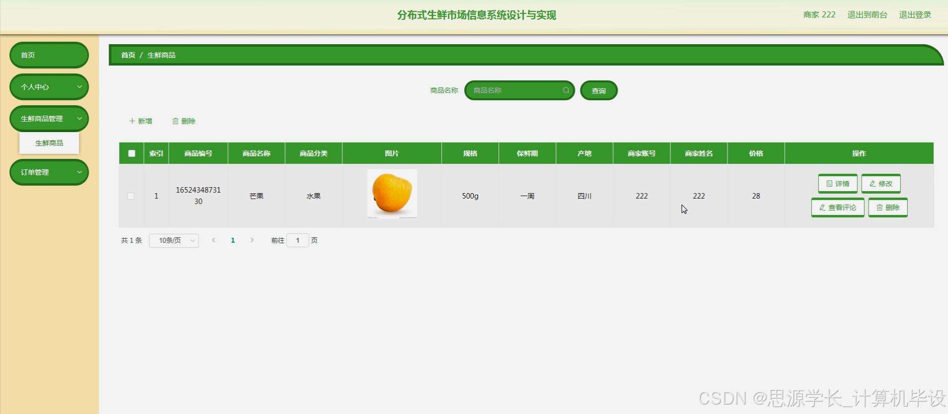 springboot毕设 分布式生鲜市场信息系统设计与实现 程序+论文