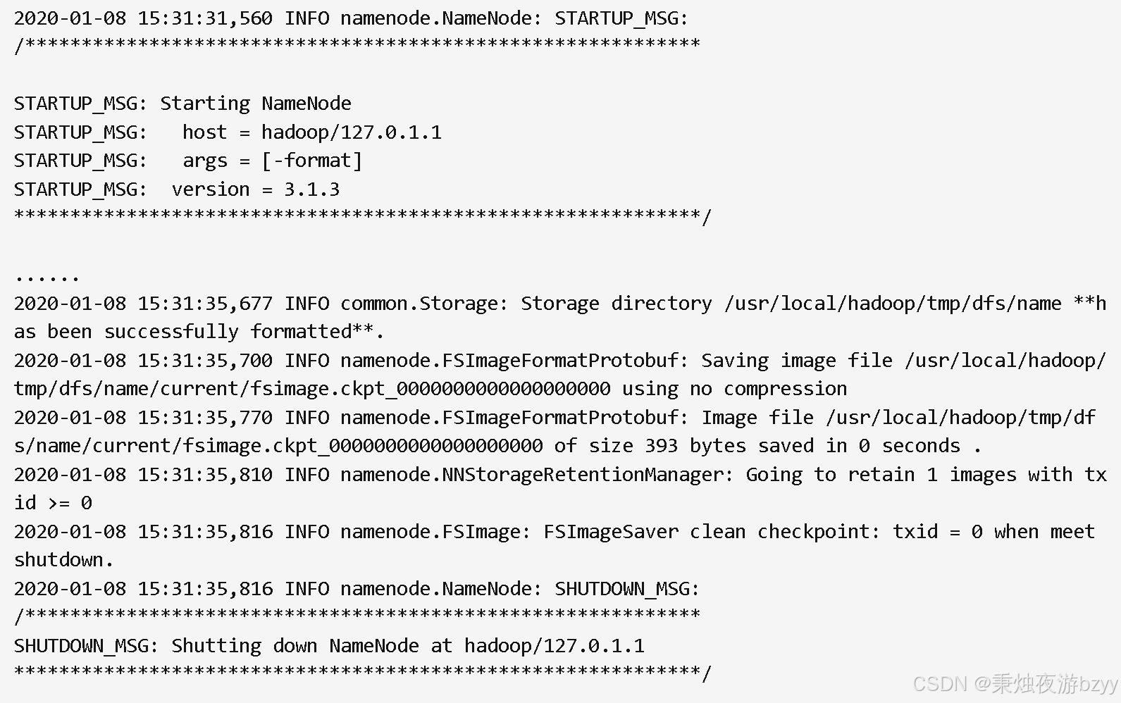 成功的话,会看到 "successfully formatted" 的提示,具体返回信息类似如下:
