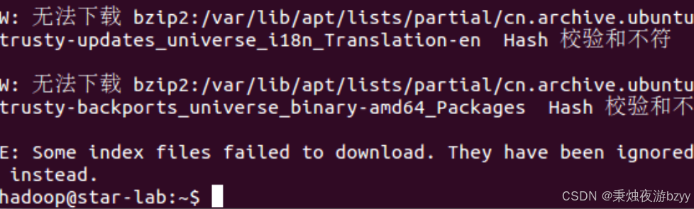 若出现如下 "Hash校验和不符" 的提示,可通过更改软件源来解决。若没有该问题,则不需要更改。从软件源下载某些软件的过程中,可能由于网络方面的原因出现没法下载的情况,那么建议更改软件源。在学习Hadoop过程中,即使出现“Hash校验和不符”的提示,也不会影响Hadoop的安装。