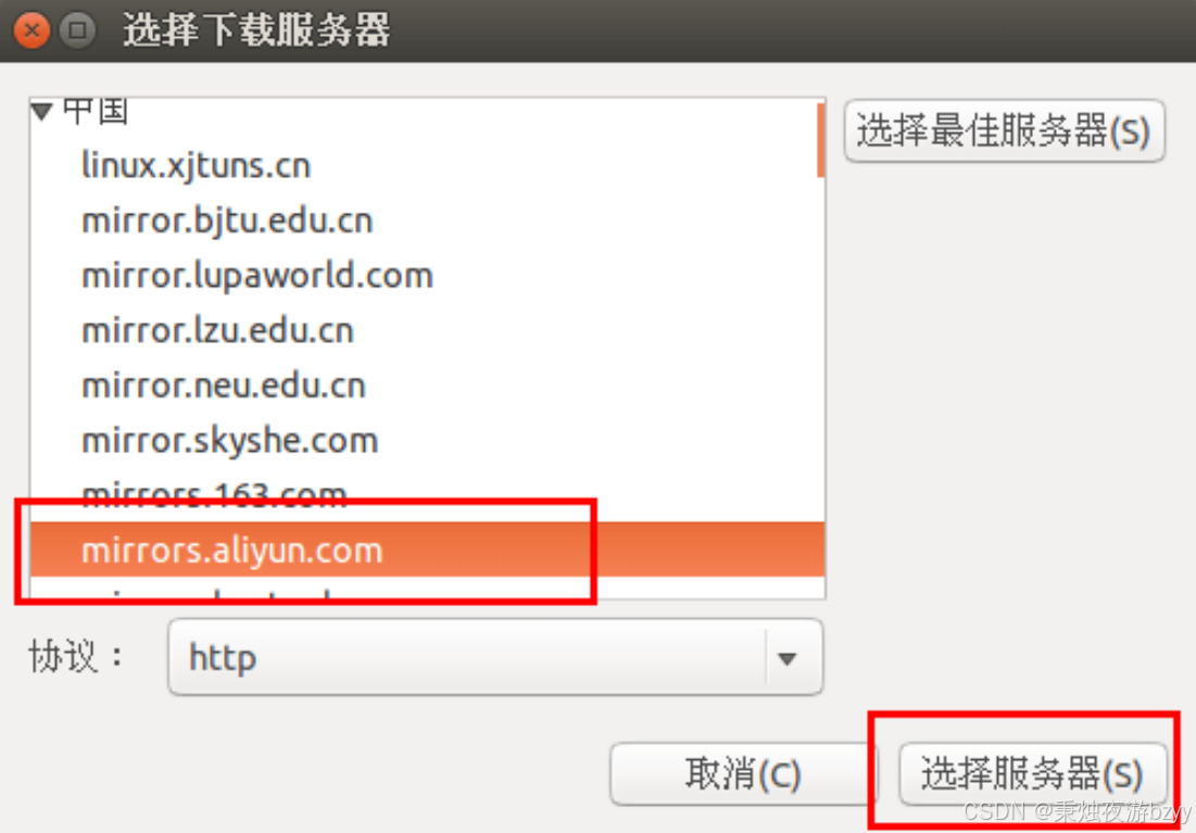 在列表中选中【mirrors.aliyun.com】,并点击右下角的【选择服务器】,会要求输入用户密码,输入即可。