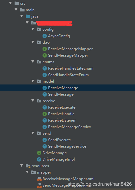 整体思想基于经典MQ事务处理的二次封装,其中发送、接收消息表会侵入业务,这里使用消息中间件是 RabbitMQ。你也可以替换成RocketMQ。每个服务固定一个队列专门用来接收消息驱动发过来的消息,如果你的服务只发送不接收消息,那么只需要建立发送表就可以,如果即发送又接收那么两个表都要建,只接收消息可以只建立接收表。消费端,每种业务处理都是一个处理器,必须实现处理器ReceiveHandle接口,业务处理器自动会成为伪观察者监听消息。