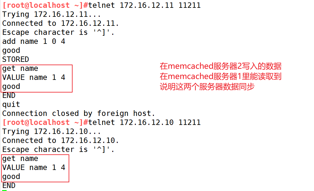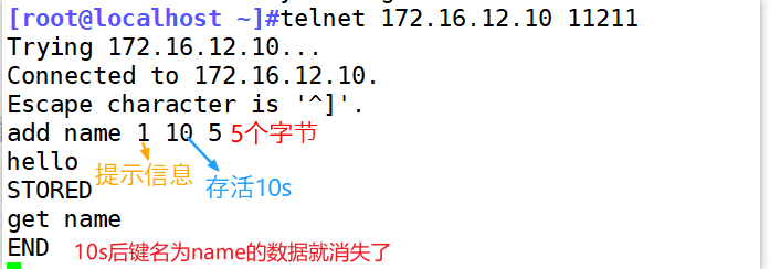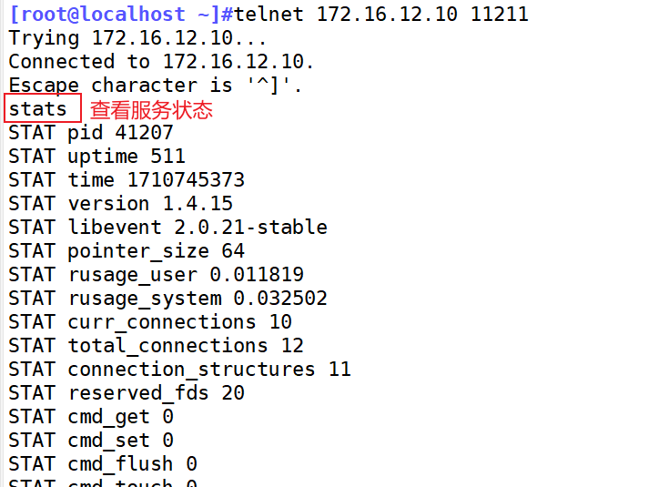 [root@localhost ~]#telnet 172.16.12.10 11211