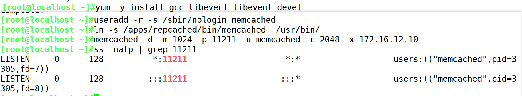 [root@localhost memcached-1.6.6]#useradd -r -s /sbin/nologin memcached