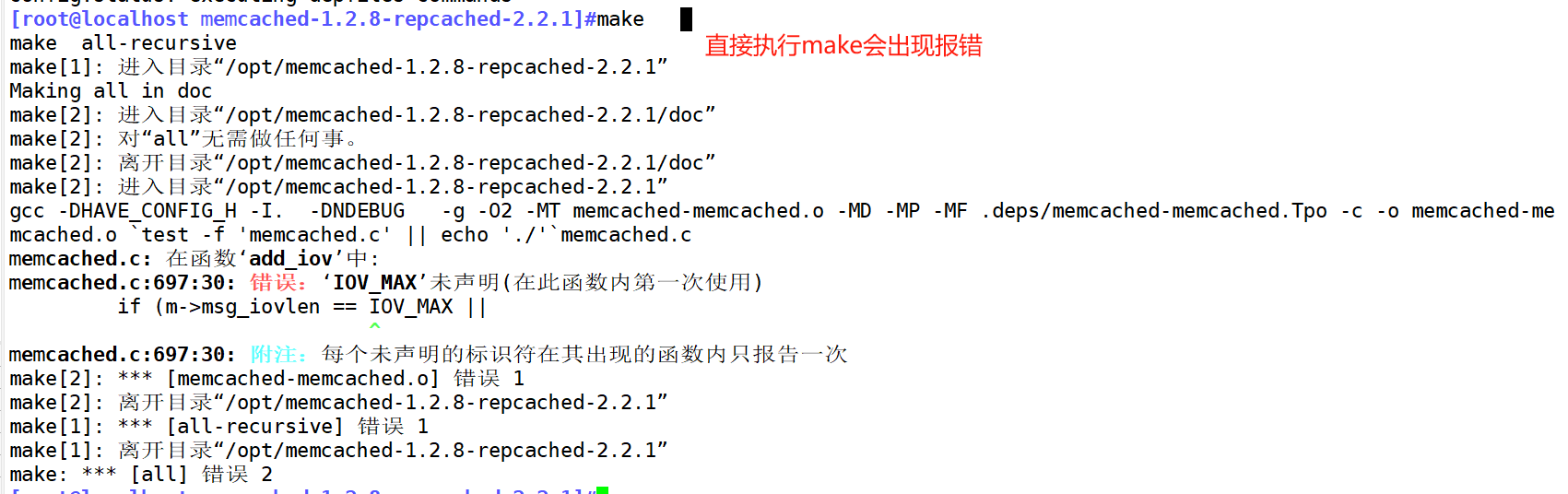 #如果直接执行make会出现如下报错