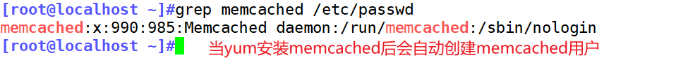 [root@localhost ~]#useradd -r -s /sbin/nologin memcached #创建memcached程序用户