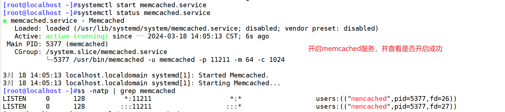 [root@localhost ~]#systemctl start memcached.service