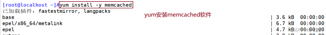 [root@localhost ~]#yum install memcached -y #yum安装memcached软件