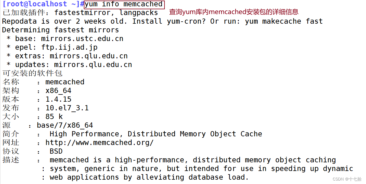 [root@localhost ~]#yum info memcached