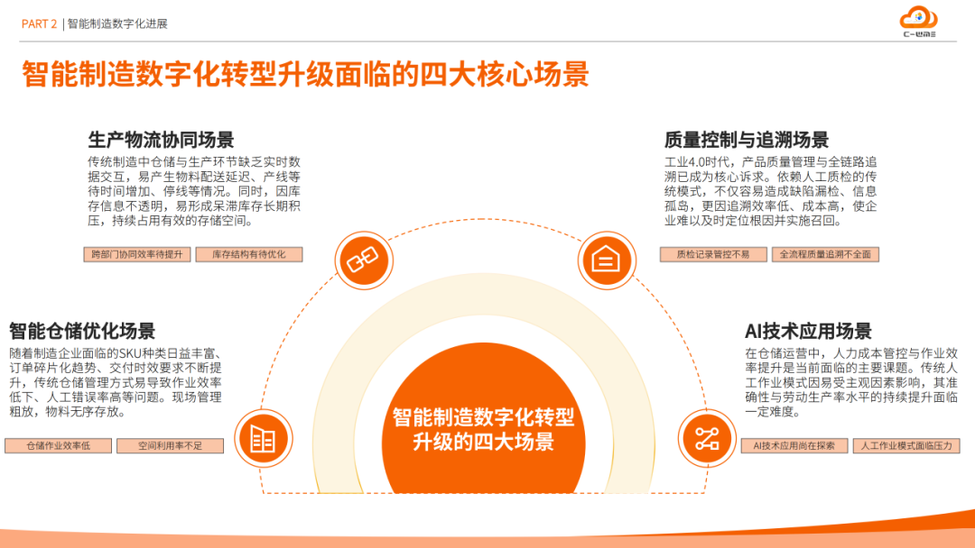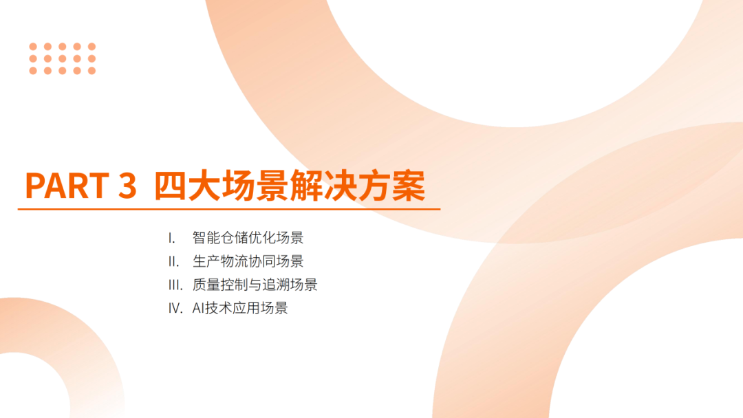 四大核心场景:智能仓储优化、生产物流协同、质量控制与追溯、AI 技术应用。