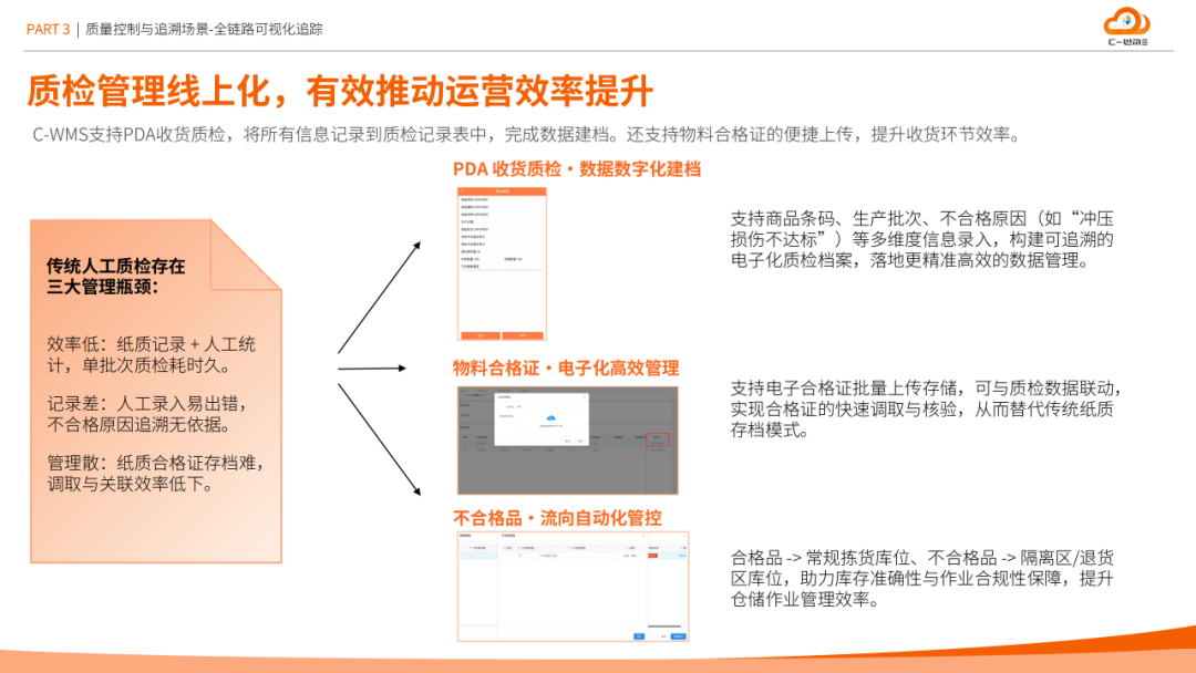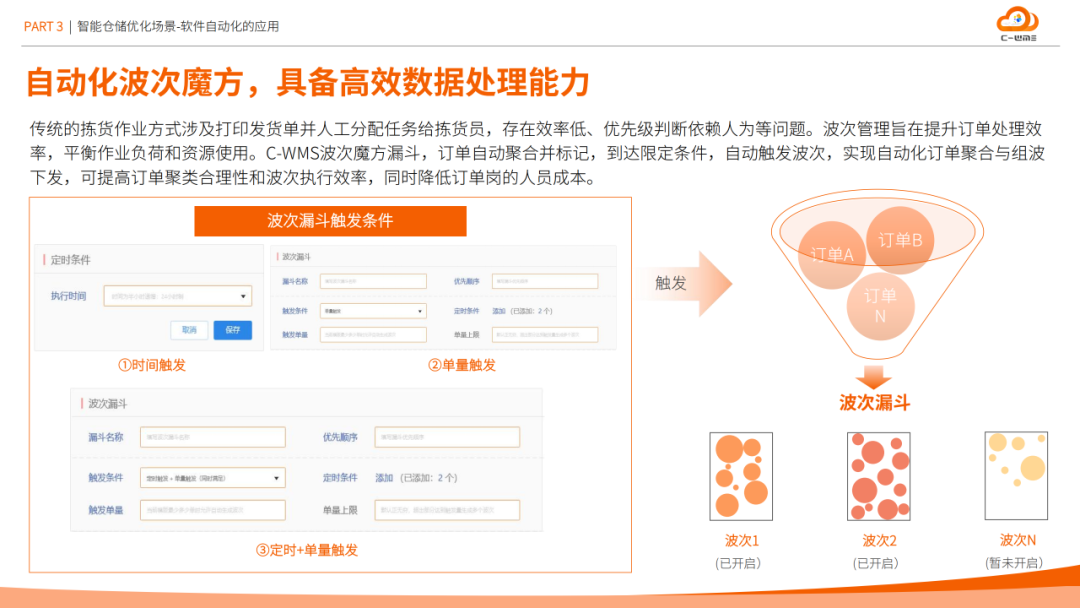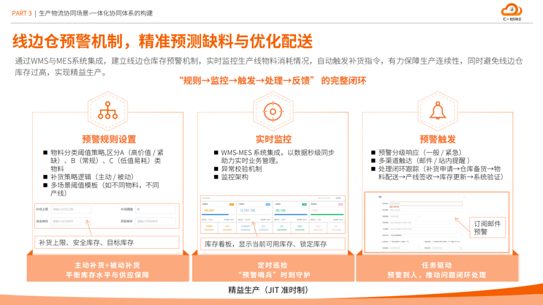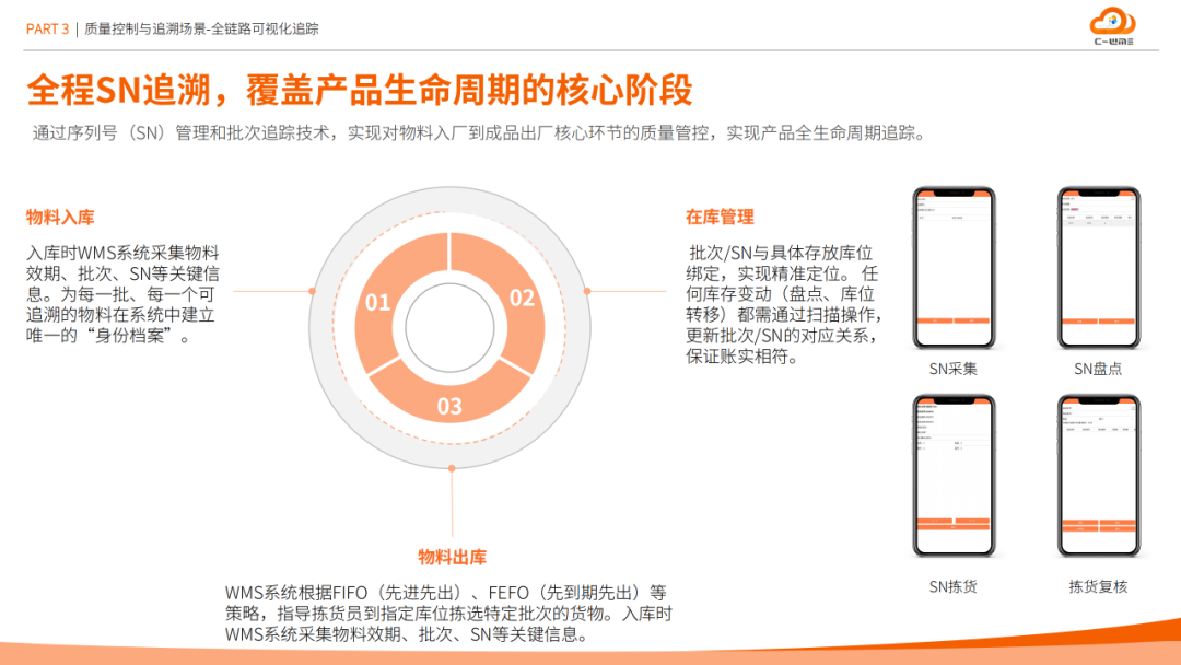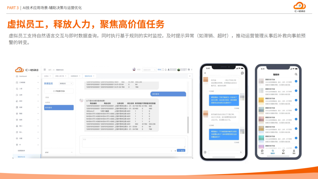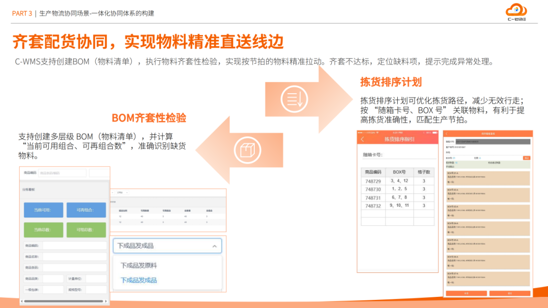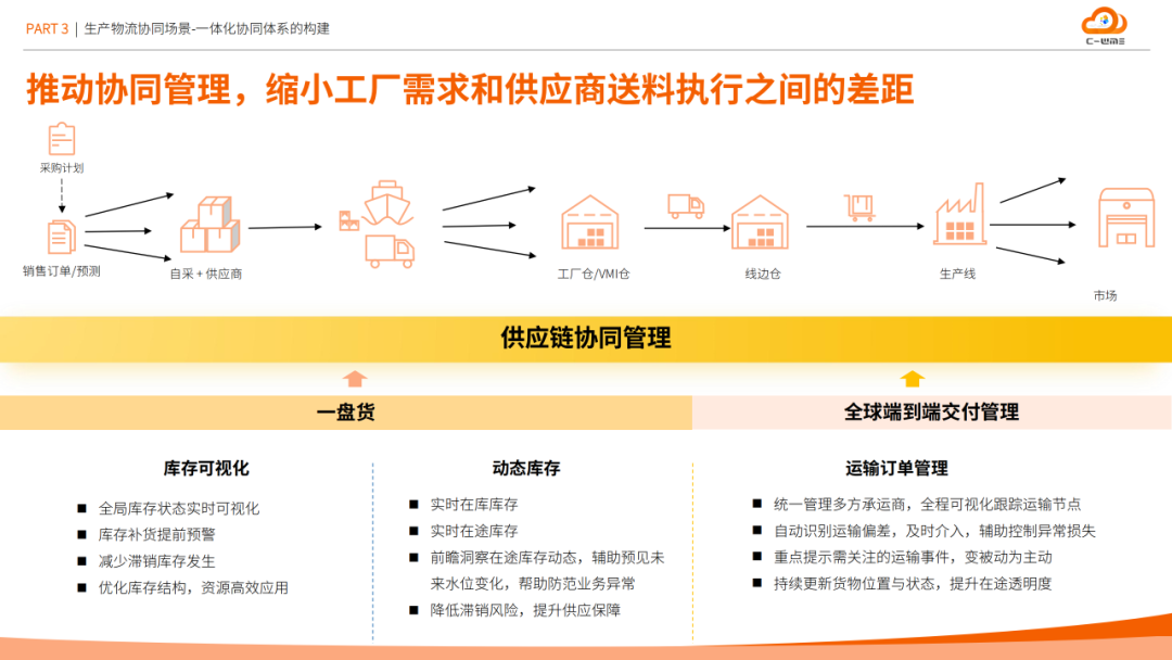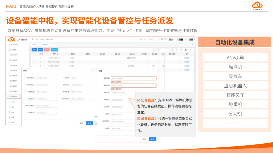 解决方案:以 C-WMS 系统为核心,整合软件智能策略、硬件自动化设备、AI 技术,打通供应链全链路数据,实现高效协同。