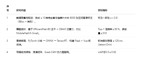 - 学术价值 补充小麦病虫害实景数据集,探索轻量化模型在边缘设备部署。