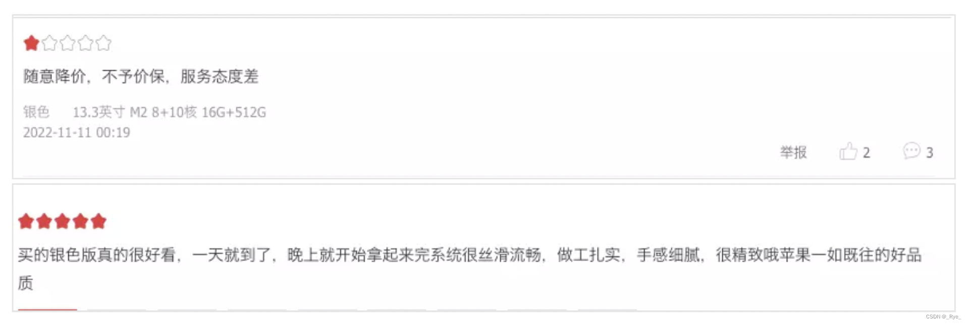 下面我们就用这个方法分析一下两条在京东上购买了 iPhone 用户的评论。