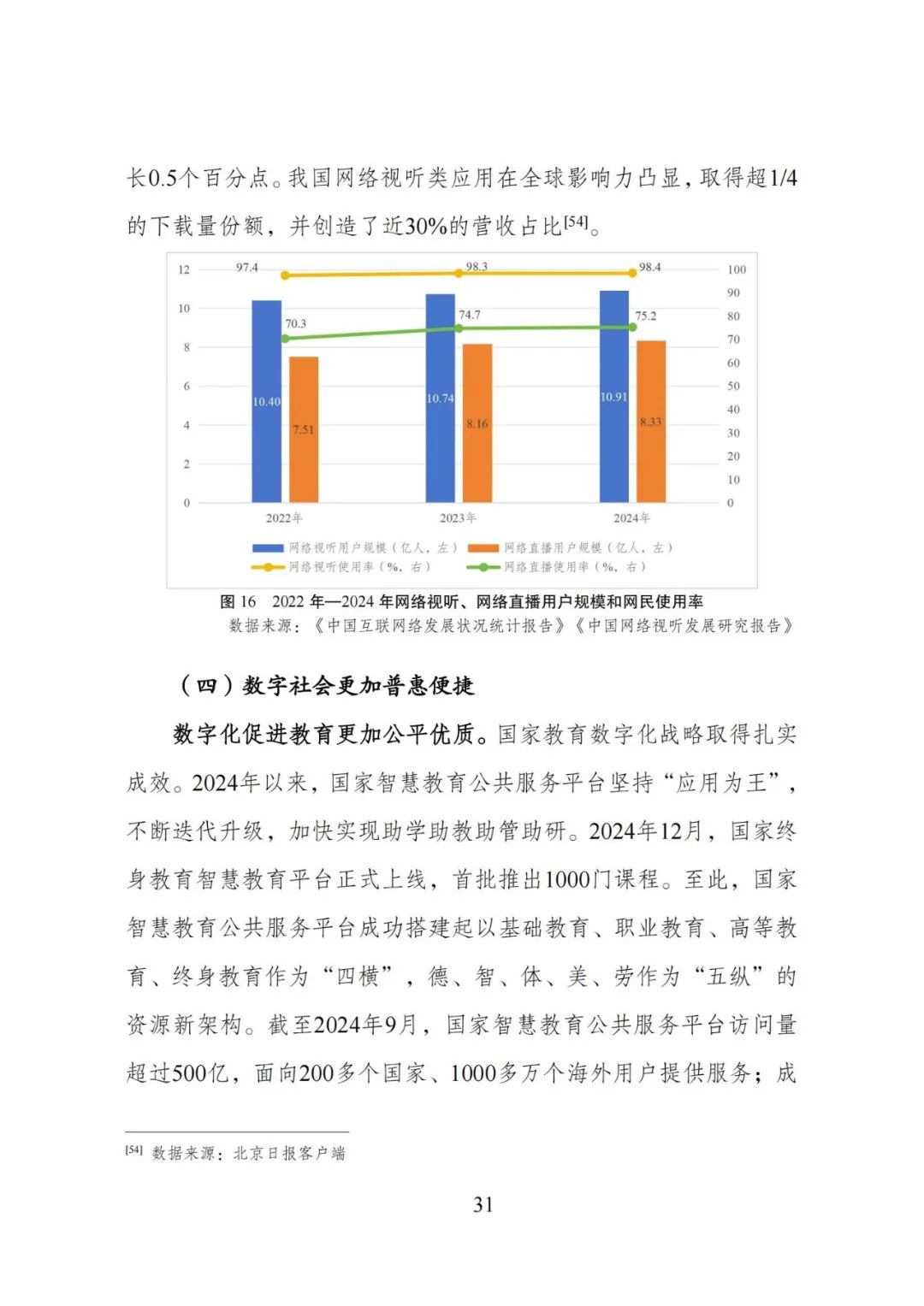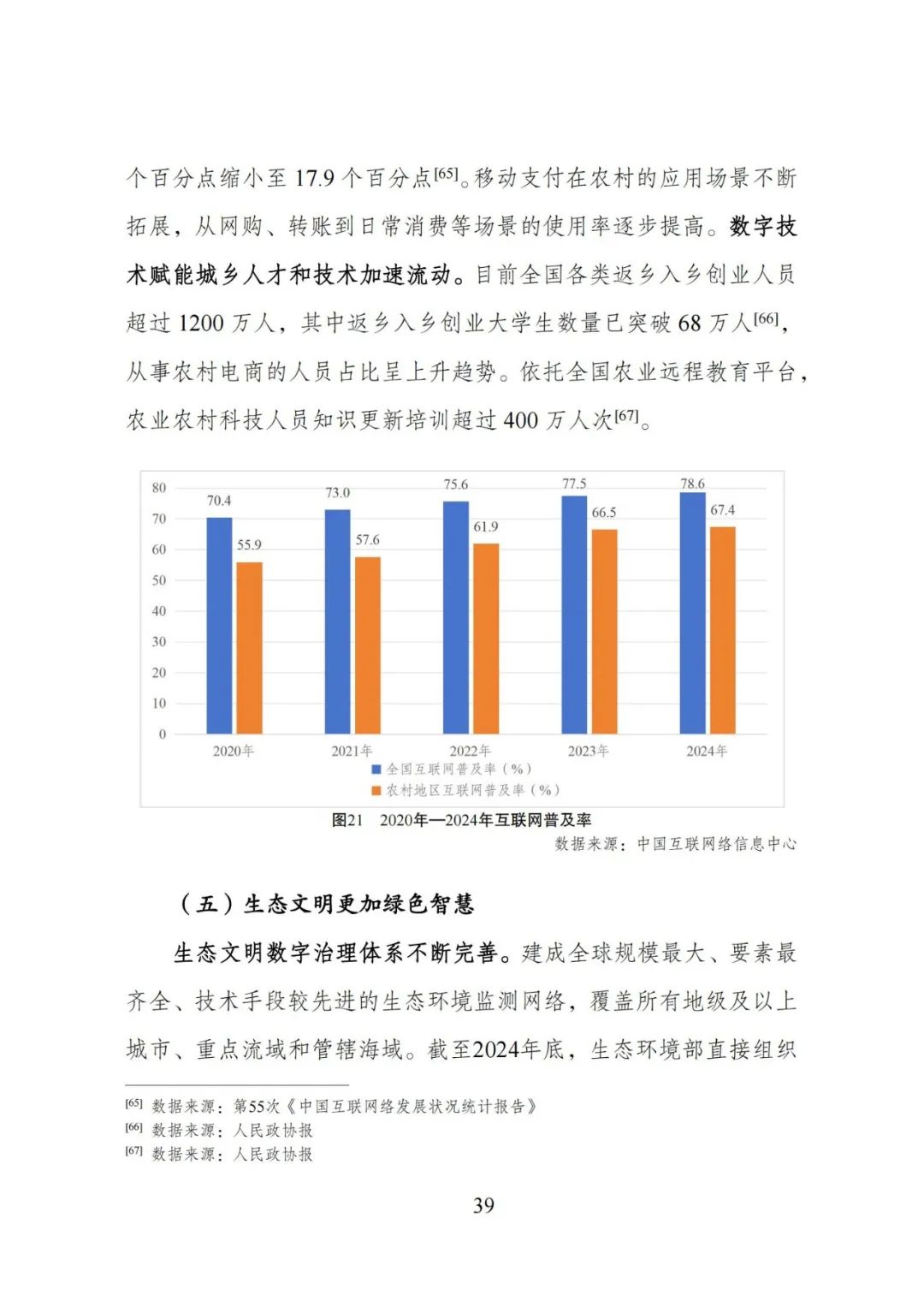 数字技术创新成果丰硕:国产人工智能崛起,前沿技术如脑机接口、集成电路等取得突破,数字技术开源体系不断完善,技术与产业创新深度融合,东部地区数字产业发展领先。数字经济稳中提质:核心产业规模扩大,产业发展量质齐升,各行业数字化转型加速,数字消费升级,投融资回升,平台经济规范创新。生态文明绿色智慧:治理体系完善,监管能力提升,自然资源 “一张图” 建设加快,数字孪生水利体系打造,行业绿色化转型推进。数字