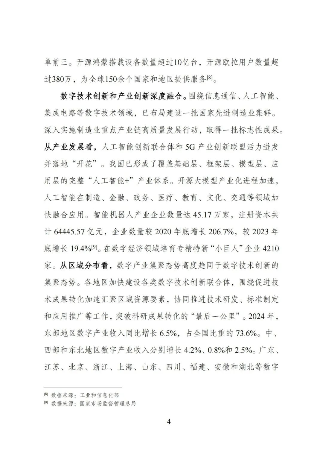 数字技术创新成果丰硕:国产人工智能崛起,前沿技术如脑机接口、集成电路等取得突破,数字技术开源体系不断完善,技术与产业创新深度融合,东部地区数字产业发展领先。