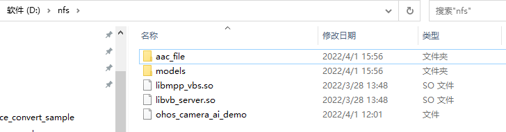 步骤4:将device/soc/hisilicon/hi3516dv300/sdk_linux/sample/taurus/目录下的models文件夹和aac_file文件夹拷贝至Windows的nfs共享路径下(前提是按照《获取sample依赖的资源文件到本地》文档获取了资源文件)