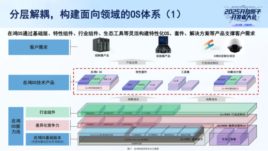 该创新架构配合越加丰富的能力池,允许“在鸿OS”通过“自由组合”的方式,像搭积木一样灵活地构建出面向不同客户、不同场景的定制化OS产品。无论是芯片模组厂商对基础系统的要求,还是系统集成商对深度定制的需求,在鸿OS都能高效响应,真正实现“一套底座,千种可能”。