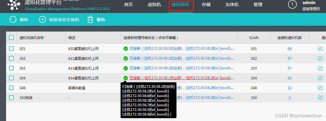 此处如果没有准备好虚拟交换机,需要到VMP的虚拟网络一项中进行添加:
