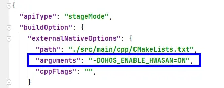 "arguments": "-DOHOS_ENABLE_HWASAN=ON"