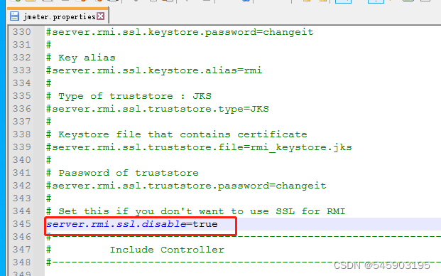 2、#server.rmi.ssl.disable=false 修改为:server.rmi.ssl.disable=true并且将前面的#注释去掉。
