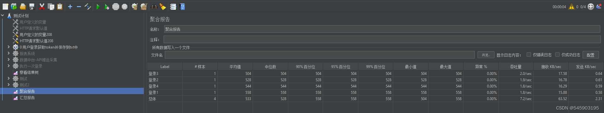 执行成功后,在控制端GUI的聚合报告可查看到执行结果。