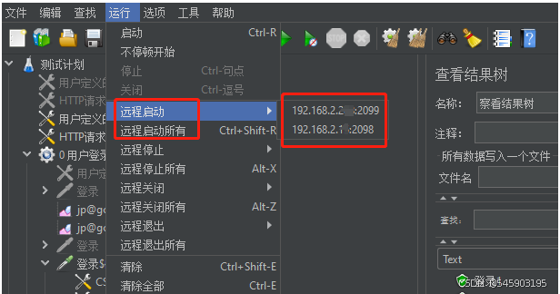 在Run的Remote Start中,可以看到之前在控制端配置的IP,代表可选择的负载机。