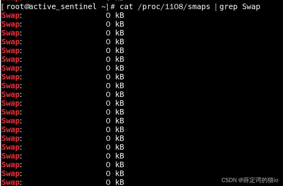 (3)通过 /proc/{pid}/smaps |grep Swap 命令可以查看具体某个进程占用的swap情况: