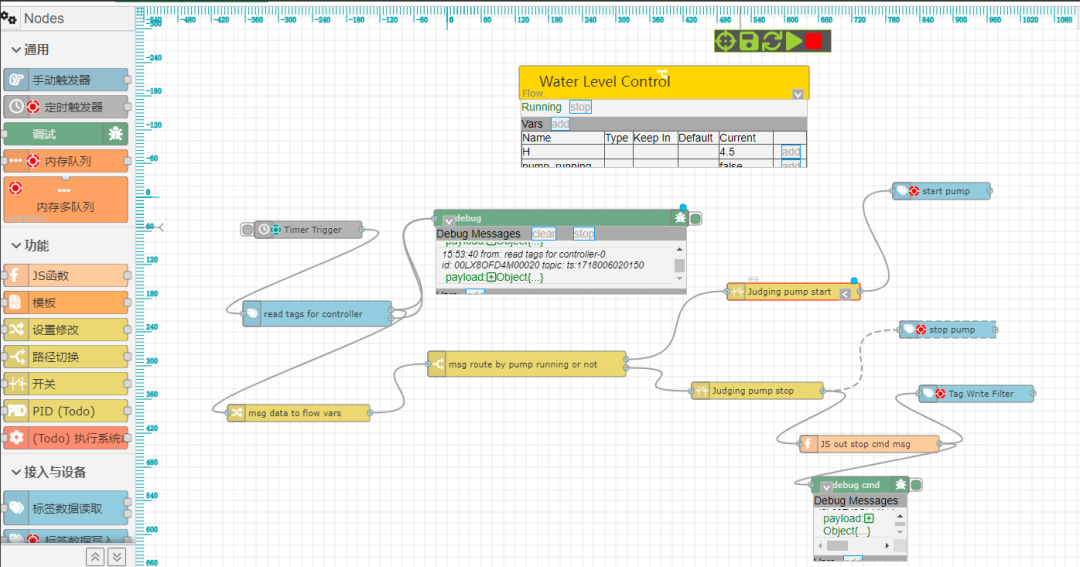 可视化流程:用节点搭控制逻辑(比如“传感器数据超阈值→触发报警→发MQTT消息→存数据库”),支持定时触发、事件触发(比如设备上线/下线),比写Java代码灵活10倍。