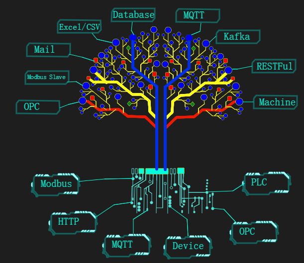 3. 协议适配全面:覆盖工业控制、物联网、数据库等多类主流协议,无需重复开发接入驱动,快速适配不同厂商的设备与系统。